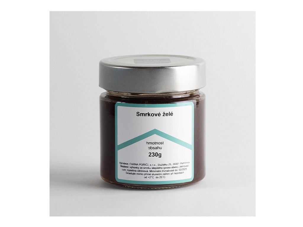 Ingredience: výhonky ze smrku ztepilého (Picea abies), želírovací cukr, kyselina citronová